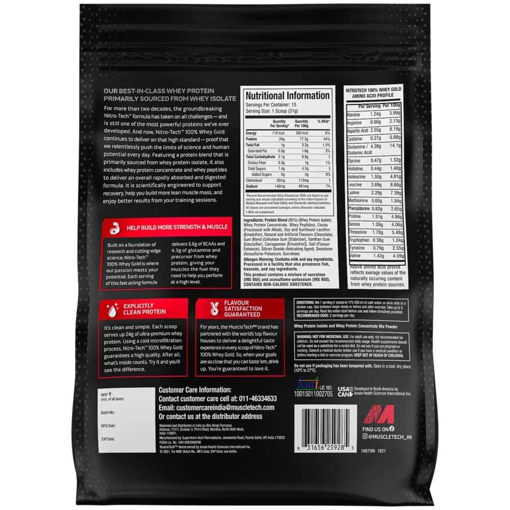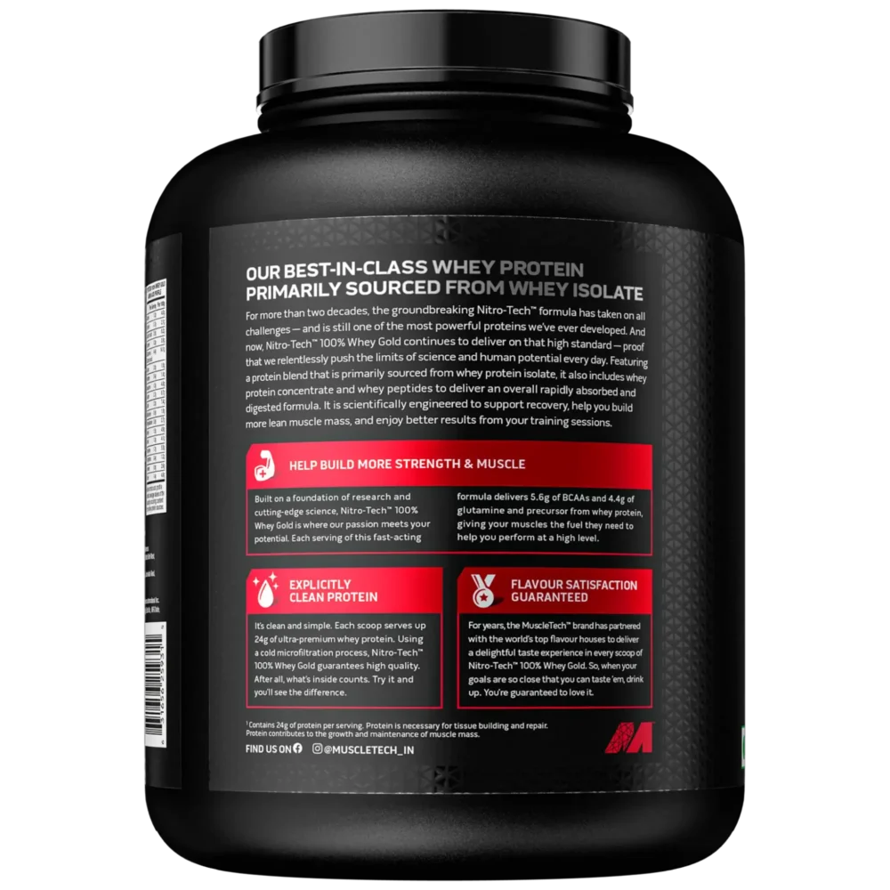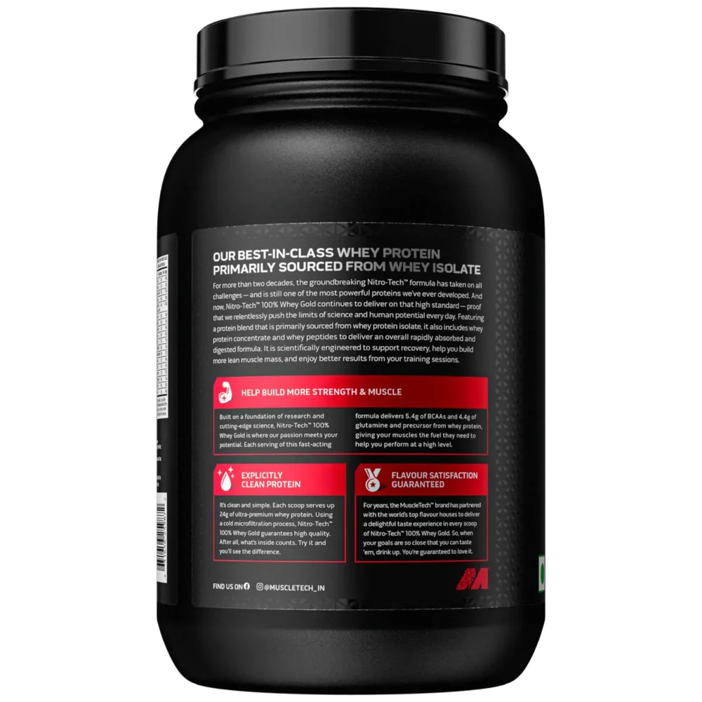 Along with micro-filtered whey protein isolate plus whey concentrate, NITRO-TECH 100% WHEY GOLD delivers superior absorption, digestibility and mixability. Each scoop serves up 24g of ultra-premium protein that supplies 5.5g of BCAAs and 4g of glutamine and precursor. |