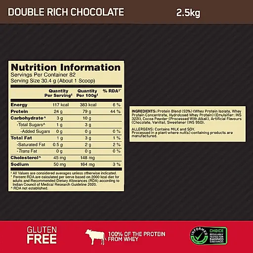 - Other ingredients: Every pack of ON whey protein 2kg contains natural and artificial flavors, sweeteners, and stabilizers.